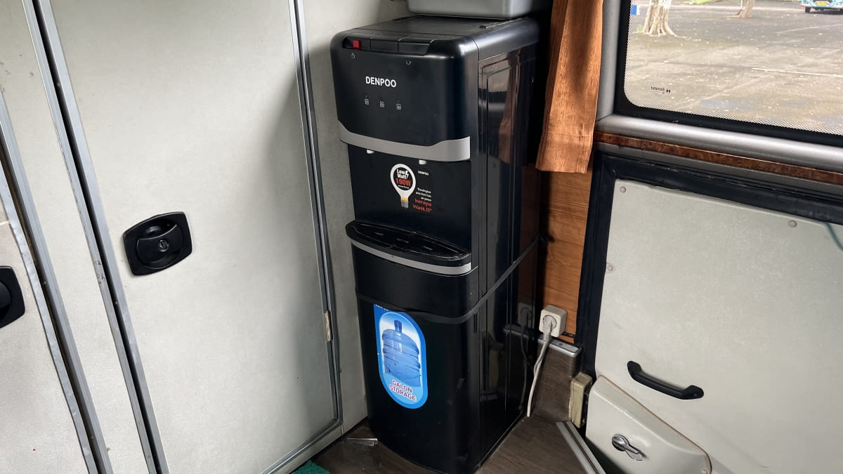 Kebutuhan Dasar: Tersedia Dispenser air mineral (panas & dingin) untuk seduh kopi atau teh kapan saja, serta bagasi luar yang sangat lapang untuk koper besar.