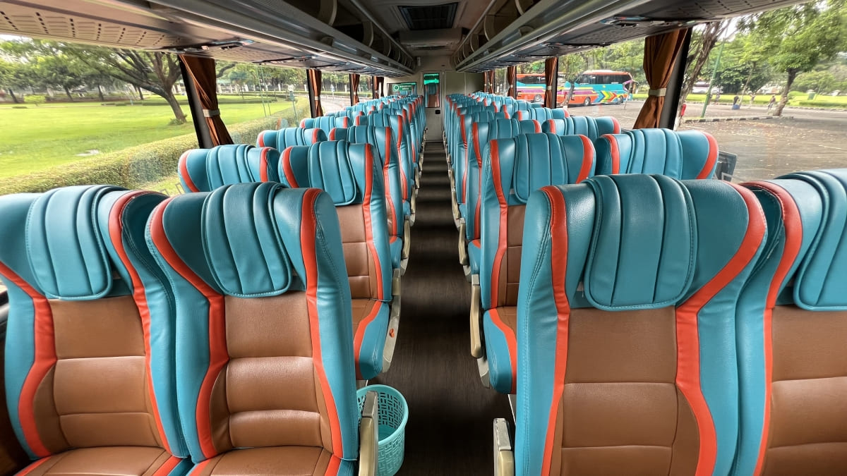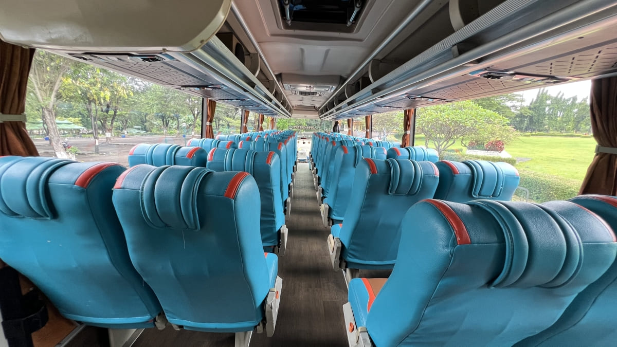 Untuk Anda yang memprioritaskan kenyamanan ekstra, kapasitas 45 Seats ini adalah pilihan yang sangat ideal karena memberikan ruang gerak yang jauh lebih luas. Konfigurasi kursi dirancang sedemikian rupa agar setiap penumpang bisa menikmati jarak kaki (legroom) yang lega, sehingga perjalanan lintas kota maupun lintas pulau tetap terasa santai tanpa perlu merasa pegal atau berdesakan dengan penumpang lain.