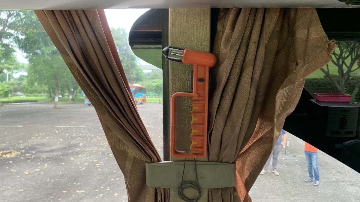 Standar Keselamatan: Kami melengkapi unit dengan APAR, Palu Pemecah Kaca, Kotak P3K, serta pintu darurat yang selalu diinspeksi secara rutin sebelum berangkat.
