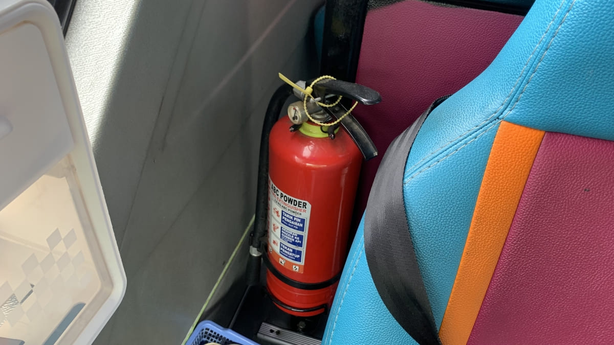 Standar Keselamatan: Kami melengkapi unit dengan APAR, Palu Pemecah Kaca, Kotak P3K, serta pintu darurat yang selalu diinspeksi secara rutin sebelum berangkat.