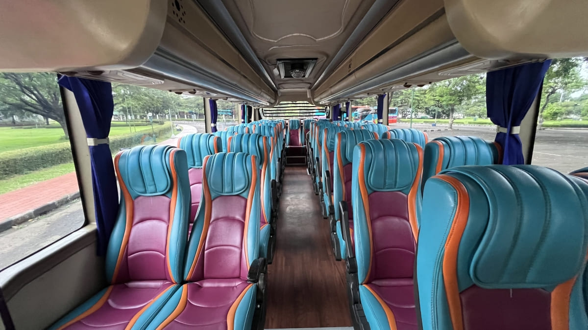 Butuh muat banyak tapi nggak mau pakai bus besar? Kapasitas 33 sampai 35 Seats ini adalah solusi paling cerdas untuk rombongan kelas menengah. Kami mengatur konfigurasi kursi sedemikian rupa supaya setiap penumpang tetap mendapatkan ruang kaki yang lega untuk selonjoran santai. Dengan ukuran bus yang lebih kompak, suasana di dalam kabin jadi terasa lebih hangat dan akrab, pas banget buat Anda yang ingin membangun bonding lebih erat selama di perjalanan.