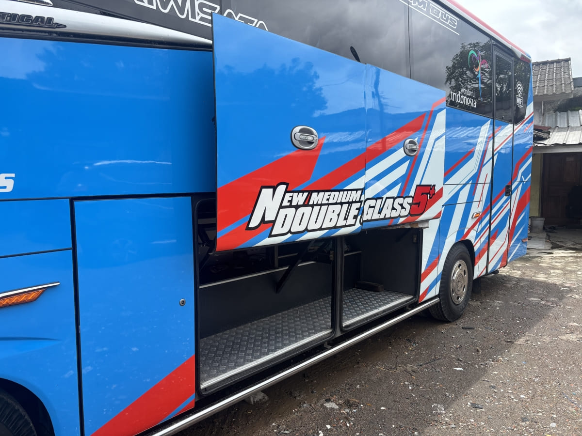 Penyimpanan Praktis: Bagasi kabin di bagian atas yang rapi untuk barang kecil dan bagasi luar yang cukup luas untuk menampung koper atau barang bawaan rombongan.