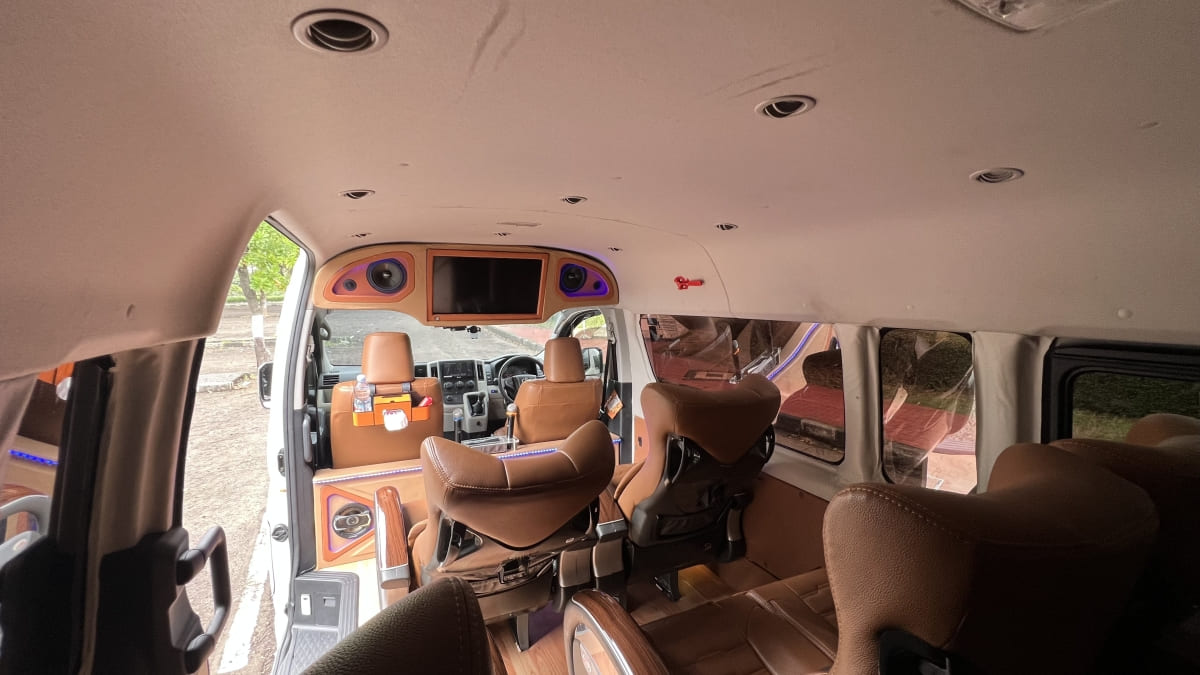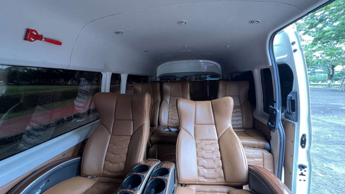 Toyota Hiace Premio Luxury hadir sebagai pilihan utama bagi Anda yang mendambakan perjalanan dengan standar kenyamanan ala VIP namun tetap praktis dan lincah di jalanan. Dengan desain eksterior yang elegan dan bodi yang kokoh, armada ini nggak cuma sekadar alat transportasi, tapi juga simbol prestise yang siap menemani agenda penting Anda. Bagian dalamnya dirancang khusus untuk memberikan pengalaman berkendara yang sangat halus berkat suspensi jempolan dan sistem peredaman suara kabin yang luar biasa, sehingga Anda bisa menikmati obrolan privat atau beristirahat dengan tenang layaknya berada di dalam lounge eksklusif yang sedang melaju.